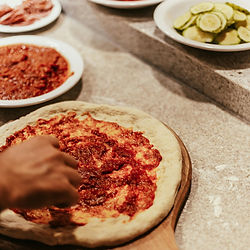 Erlebe einen Abend voller italienischer Lebensfreude und tauche in die Welt der echten, handgemachten Pizza ein. In unserem circa 3-stündigen Kurs lernst du, wie du auch zuhause – ganz ohne Pizzastein oder Profiofen – perfekte Pizza zaubern kannst. Vor Ort arbeiten wir mit einem echten Pizzaofen, um dir das volle Geschmackserlebnis zu bieten – inklusive Tipps & Tricks für deine heimische Küche. Was erwartet dich? Wir bereiten gemeinsam einen frischen Pizzateig zu, den du anschließend mit nach Hause nimmst – perfekt für deinen nächsten Pizzaabend! Bitte bring eine saubere, verschließbare Tupperdose oder einen ähnlichen Behälter für deinen Teig mit. Außerdem kochen wir gemeinsam eine klassische, italienische Tomatensauce – frisch, aromatisch und perfekt abgestimmt auf den Belag deiner Wahl. Jede*r belegt anschließend die eigene Pizza ganz nach Geschmack: ob klassisch mit Mozzarella und Basilikum, herzhaft mit Salami oder vegetarisch – du entscheidest. Die Pizzen werden nacheinander im professionellen Pizzaofen gebacken und direkt im Anschluss genossen – frisch, heiß und in lockerer Runde. Zum süßen Abschluss erwartet dich ein kleines Highlight: unsere hausgemachte Dessertpizza für alle. Genuss & Atmosphäre Zum Start stoßen wir gemeinsam mit einem Limoncello Spritz an. Während des gesamten Abends stehen Prosecco, Wein, Bier, alkoholfreie Getränke, Wasser sowie Kaffee- und Teespezialitäten zur Verfügung. Dauer: ca. 3 Stunden Wann: einmal im Monat an einem Sonntag um 14 Uhr ACHTUNG: Der Kurs ist auf maximal 6 Personen begrenzt – schnell buchen lohnt sich! Was unseren Pizzakurs besonders macht: - Kleine Gruppe mit maximal sechs Teilnehmenden für volle Aufmerksamkeit - Jede*r macht eine eigene Pizza – keine Teamarbeit, keine Kompromisse - Backen im professionellen Pizzaofen vor Ort - Extra-Tipps für die perfekte Pizza zuhause – auch ohne Spezialgeräte - Gemeinsame Zubereitung einer aromatischen Tomatensauce - Frisch zubereiteter Teig zum Mitnehmen (bitte Dose mitbringen!) - Rezept zum Nachmachen für zuhause inklusive - Hausgemachte Dessertpizza als süßer Abschluss - Entspannte Stimmung & echtes Dolce Vita-Feeling